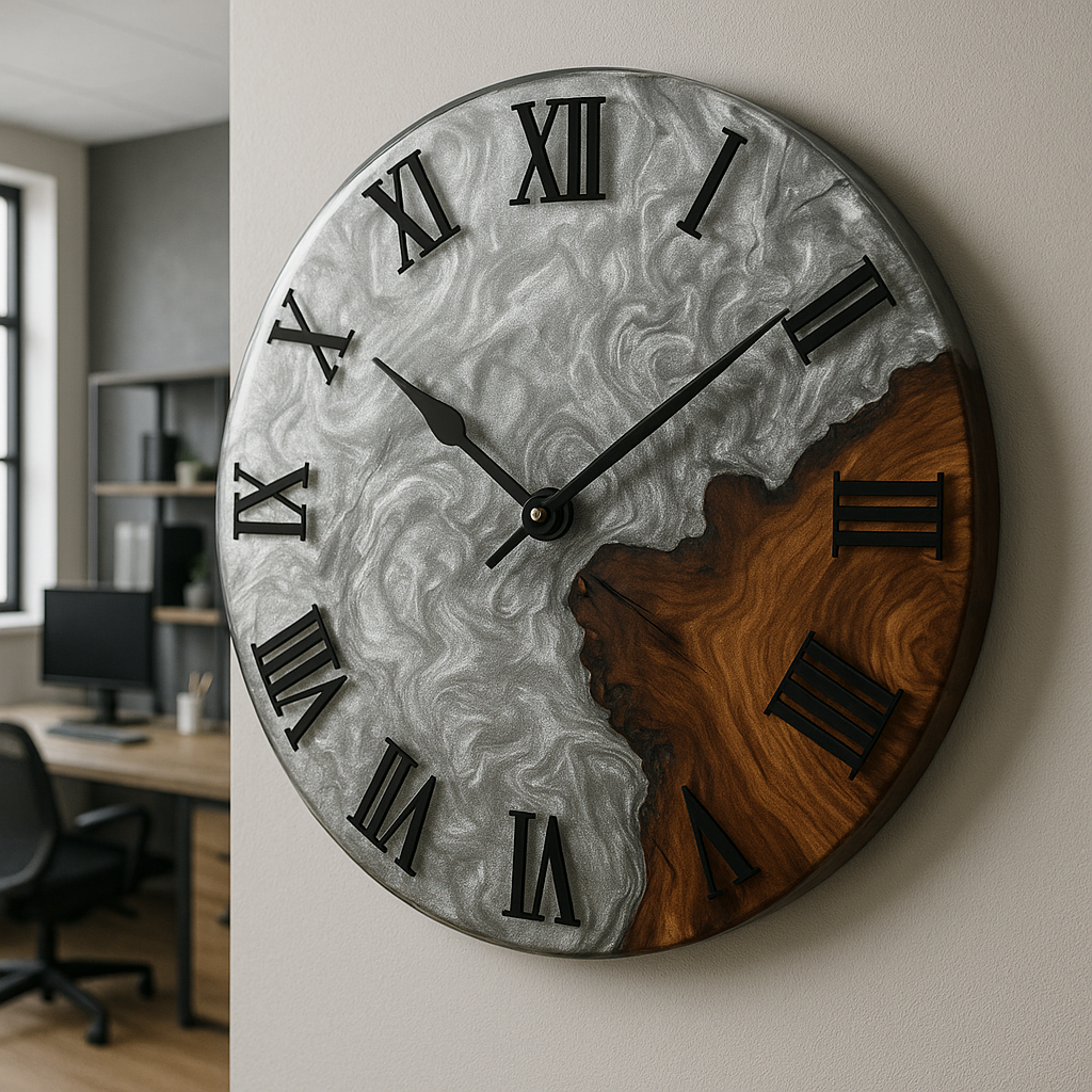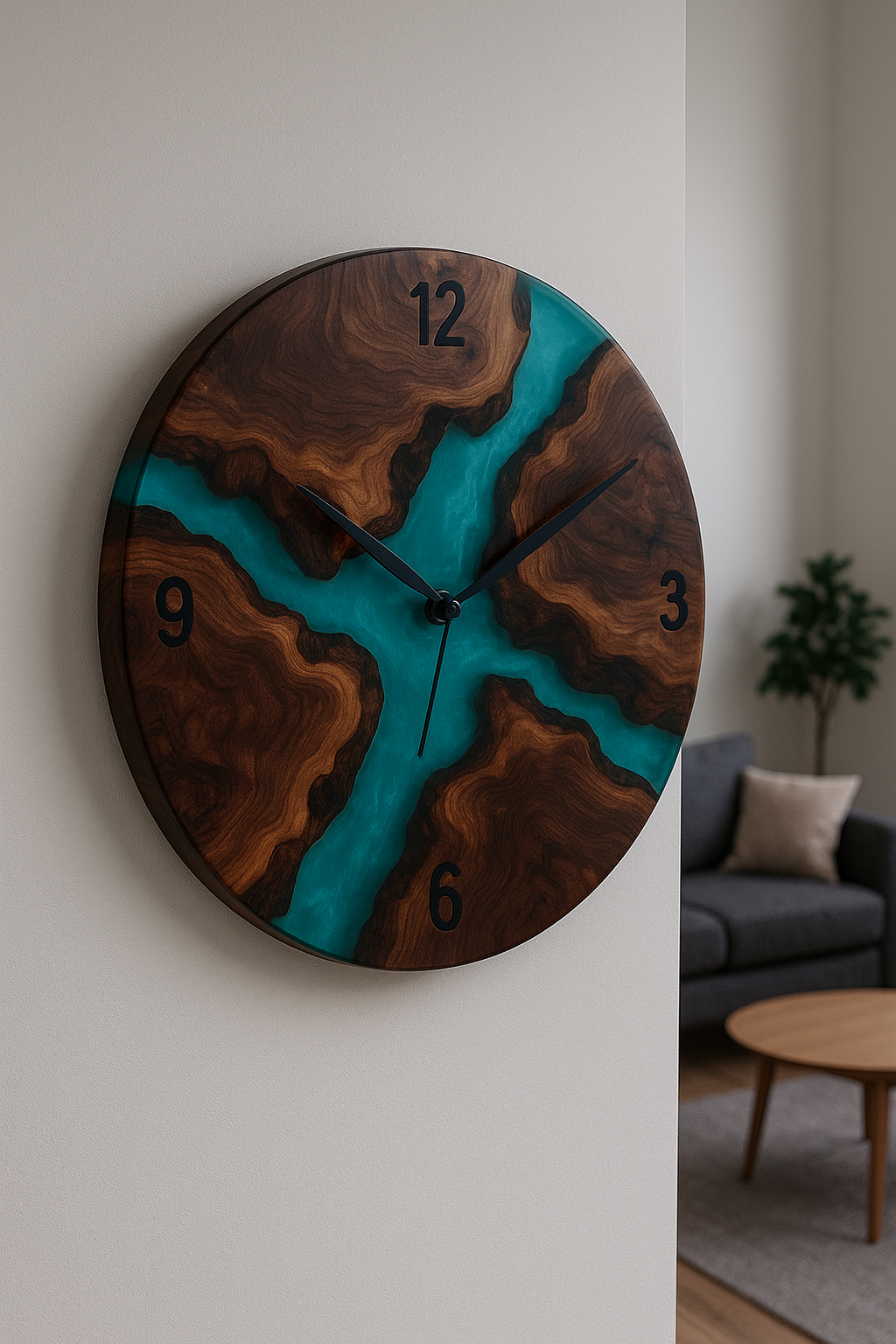 🕒 Unique resin/epoxy wall clock – natural & handmade